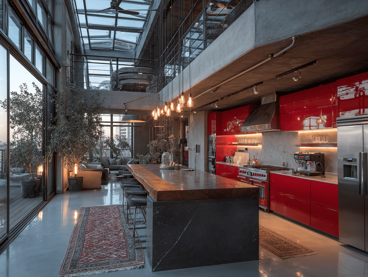 You can choose bright cherry or fire-engine red to create a bold, energetic statement in modern kitchens. People who want a rich look can benefit more from deep burgundy and wine-red tones.